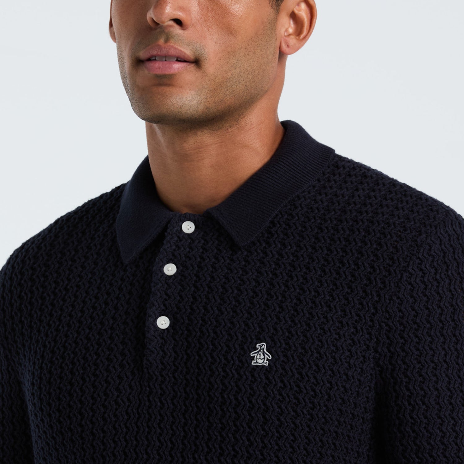 Este polo Original Penguin para hombre te dará un look informal y refinado con un toque visual intrigante. La camisa de manga larga está confeccionada en un cómodo tejido de punto de mezcla de algodón. Su corte entallado le da un perfil moderno, mientras que las costuras en zigzag le aportan un toque sutil. Llévalo solo o debajo de una chaqueta deportiva para un toque de sofisticación instantáneo.