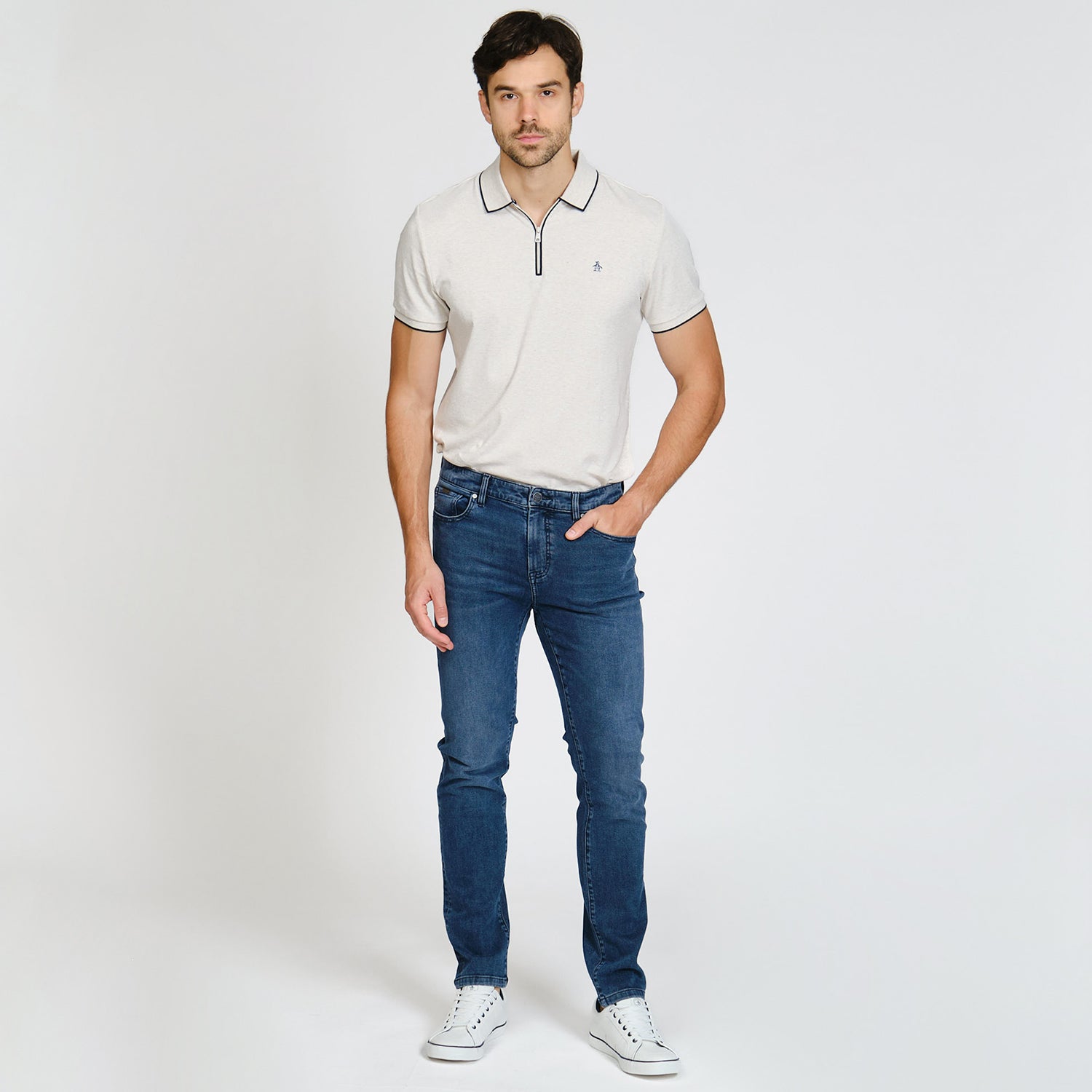Para el look casual con actitud, estos jeans Original Penguin combinan el clásico denim con materiales modernos para mayor comodidad.
