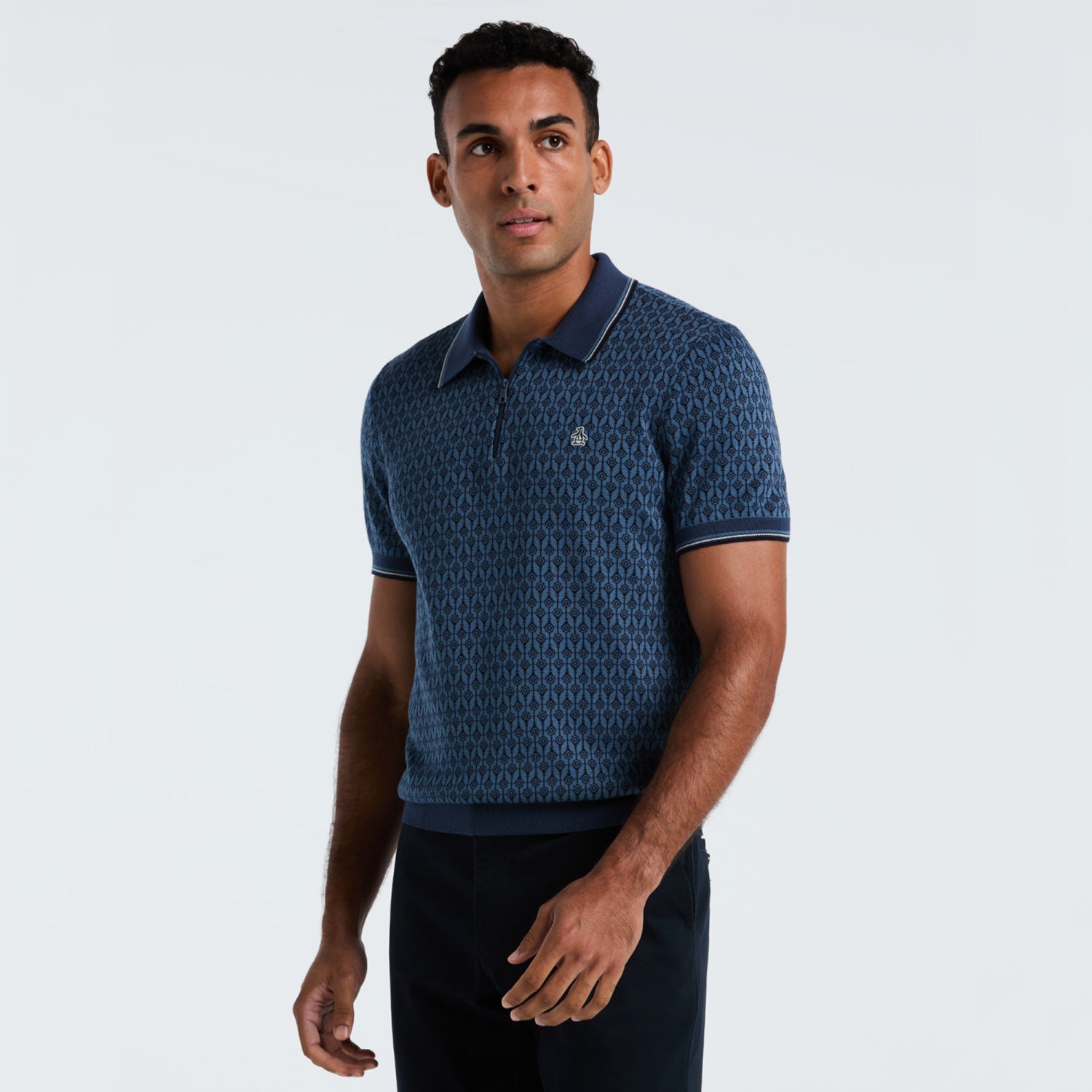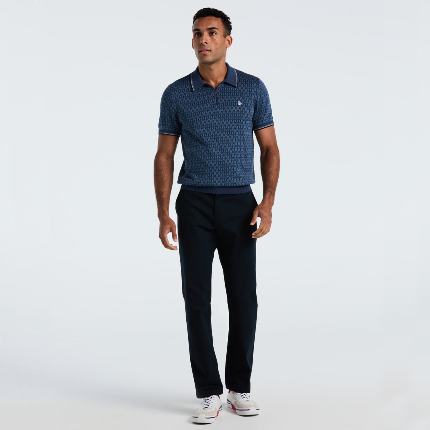 Un polo de algodón con jacquard geo y cierre 1/4 clásico reinventado con un toque moderno. Perfecto para tu estilo de vida activo.