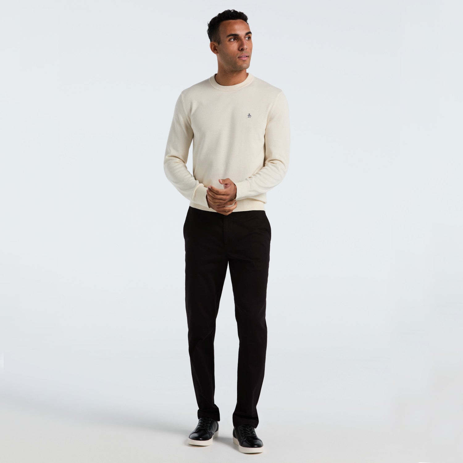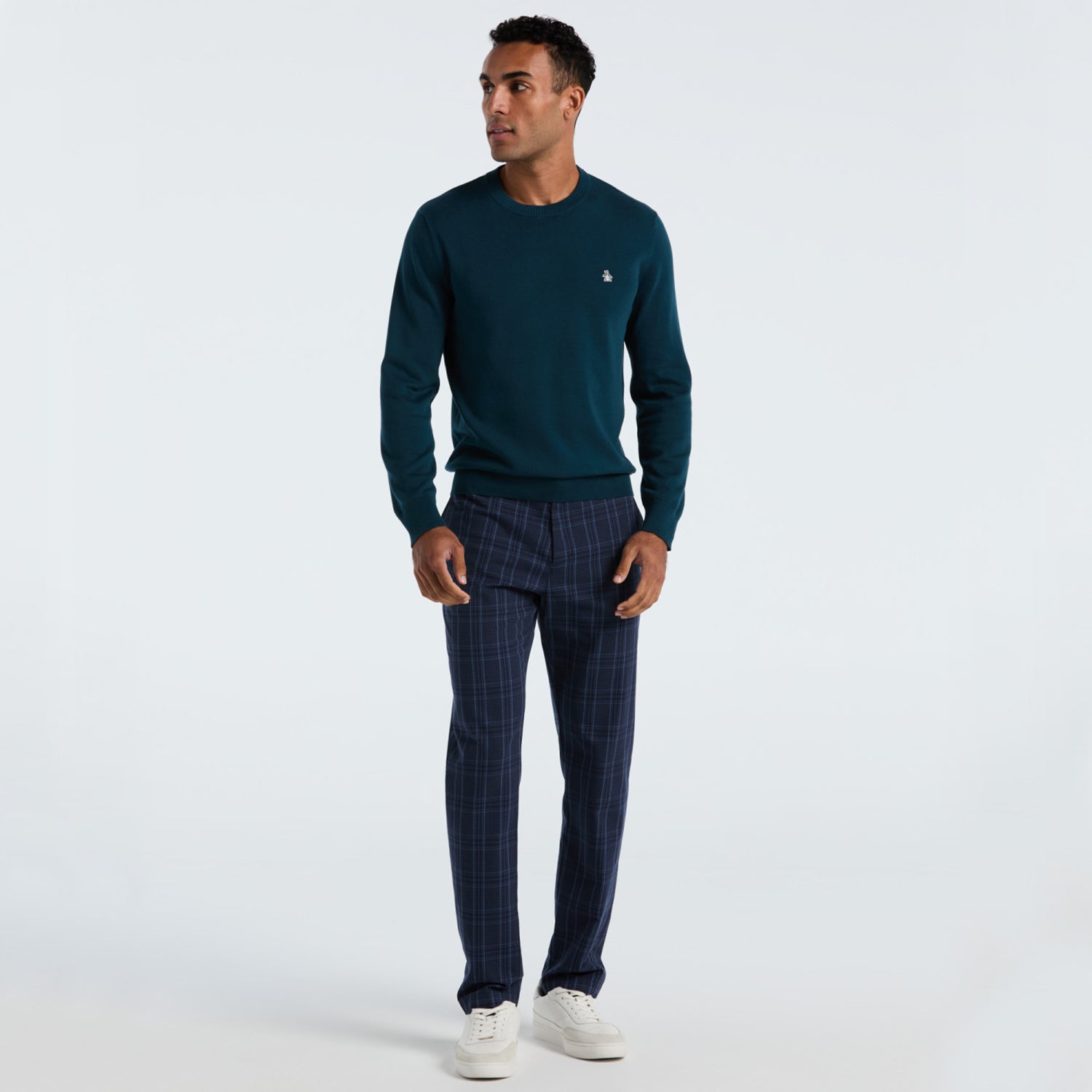 Abraza el confort sin sacrificar el estilo con esta sueter de algodón con cuello redondo de corte moderno.