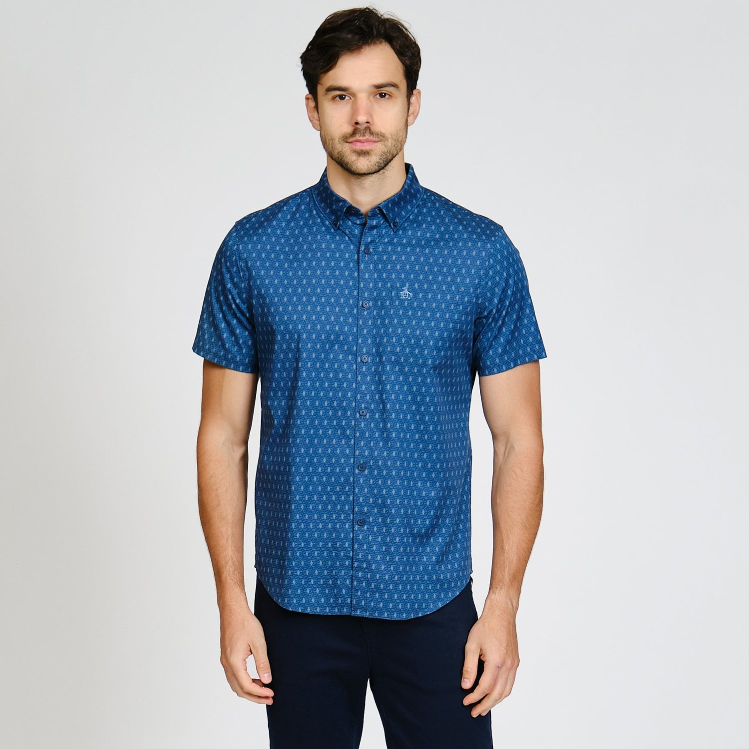 Eleva tu estilo casual con esta camisa manga corta a puntos de Original Penguin. Diseñada para comodidad y estilo, esta camisa es perfecta para cualquier ocasión.