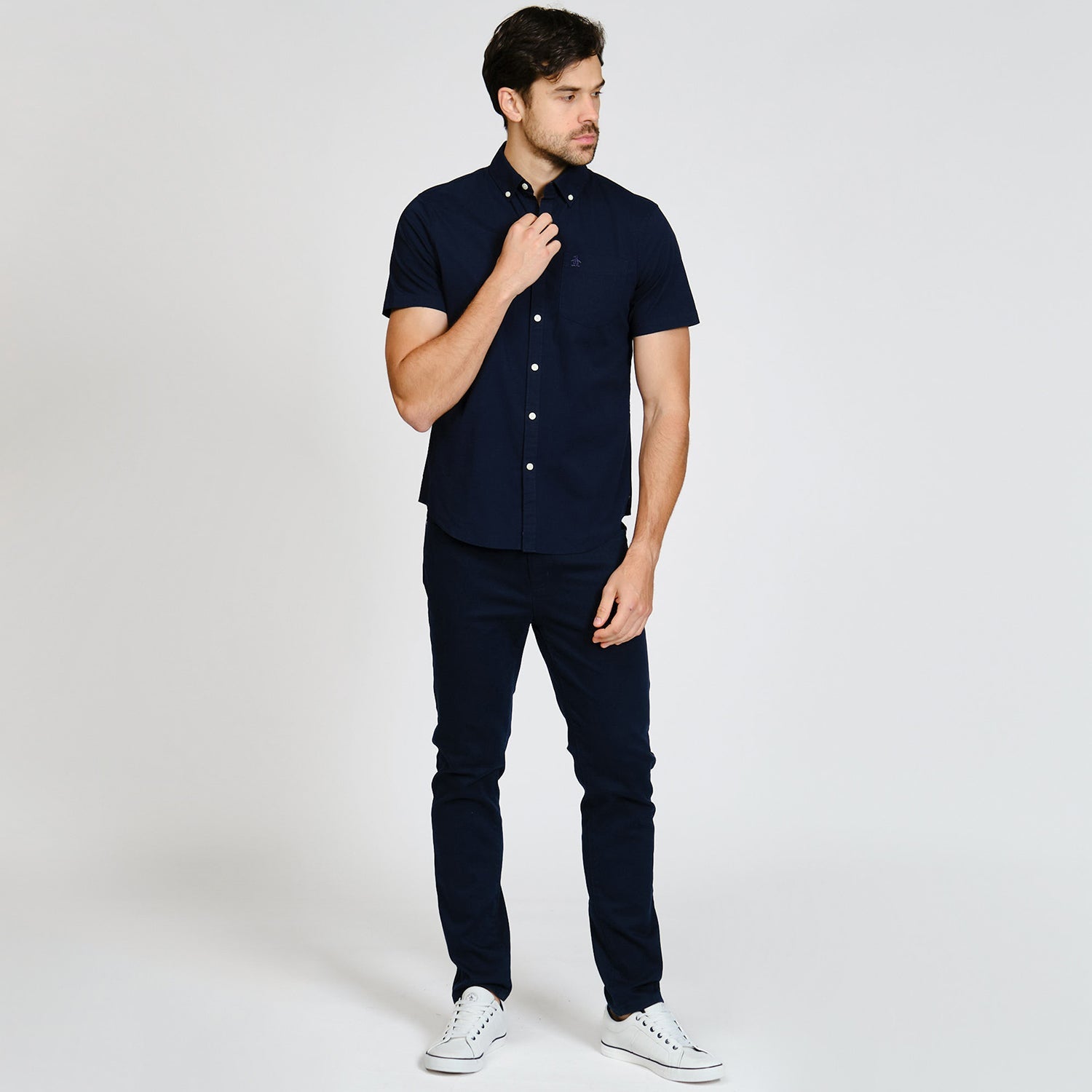 Renueva tu guardarropa con esta camisa manga corta básica popelina stretch que combina diseño contemporáneo con comodidad excepcional.