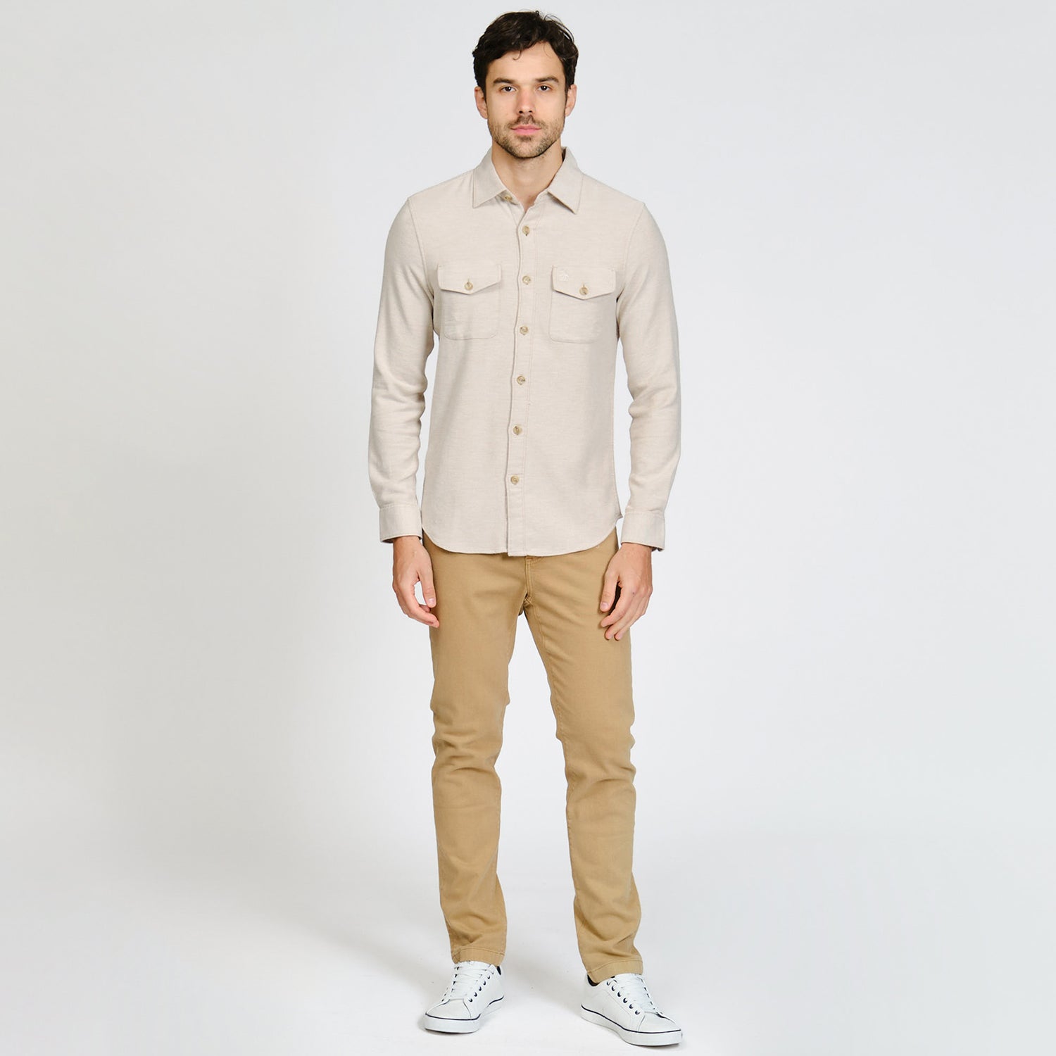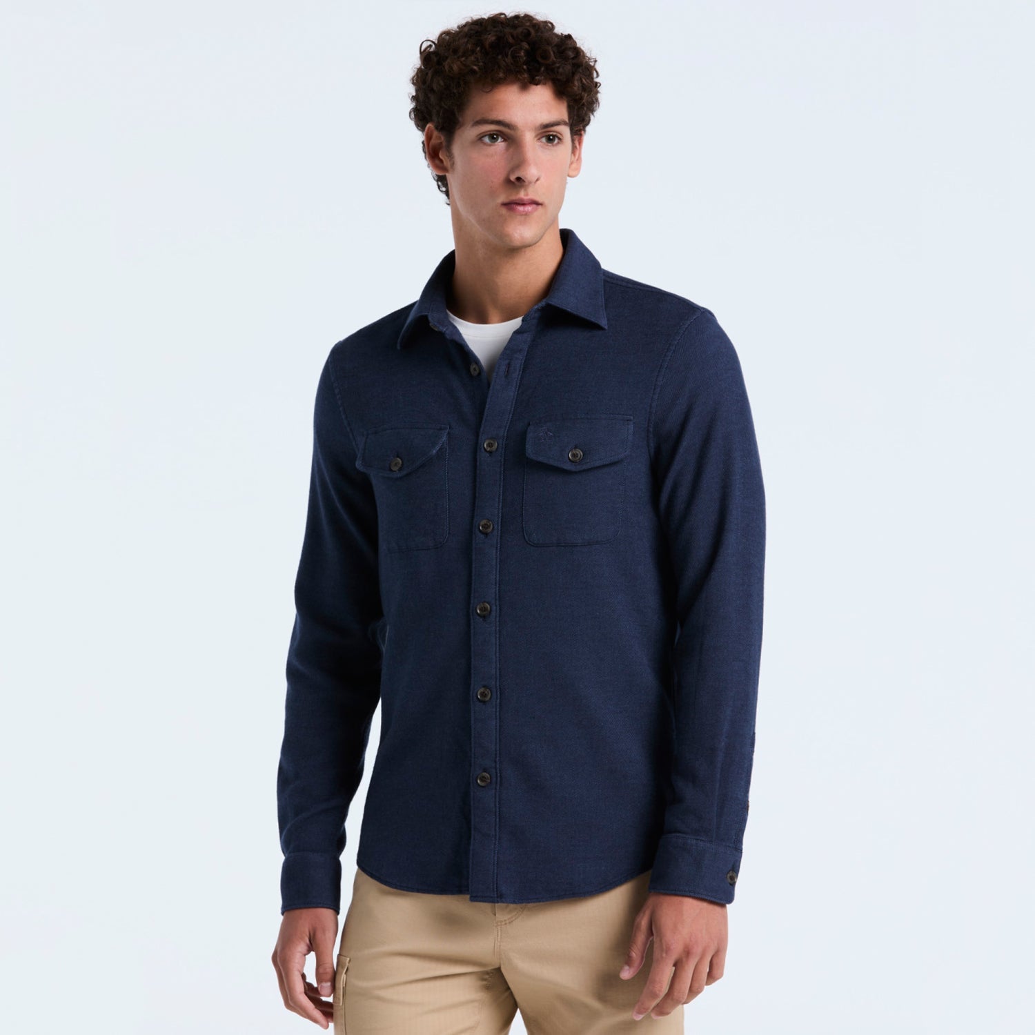 Una camisa manga larga con tejido doble versátil que se convierte en tu aliado perfecto para cualquier ocasión.
